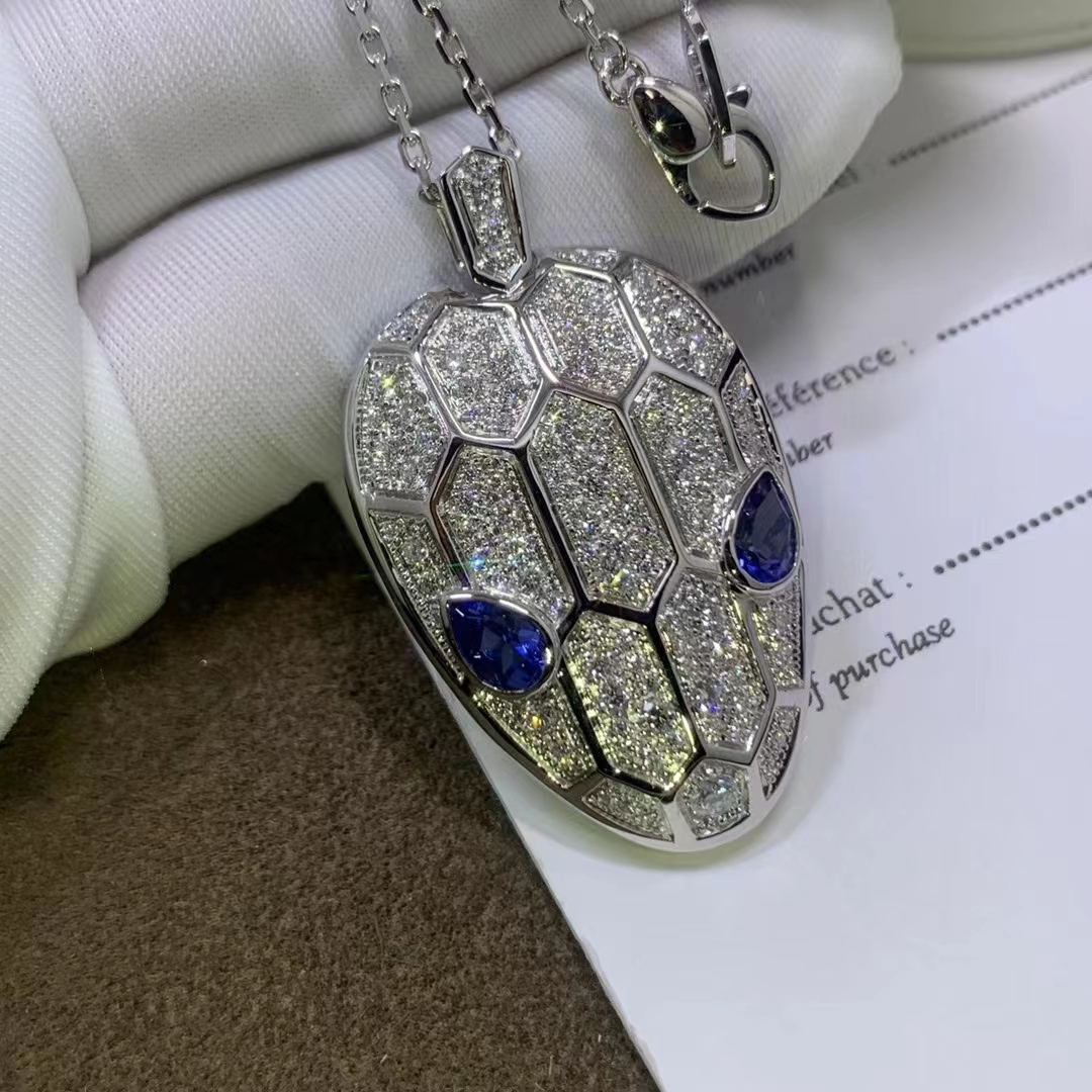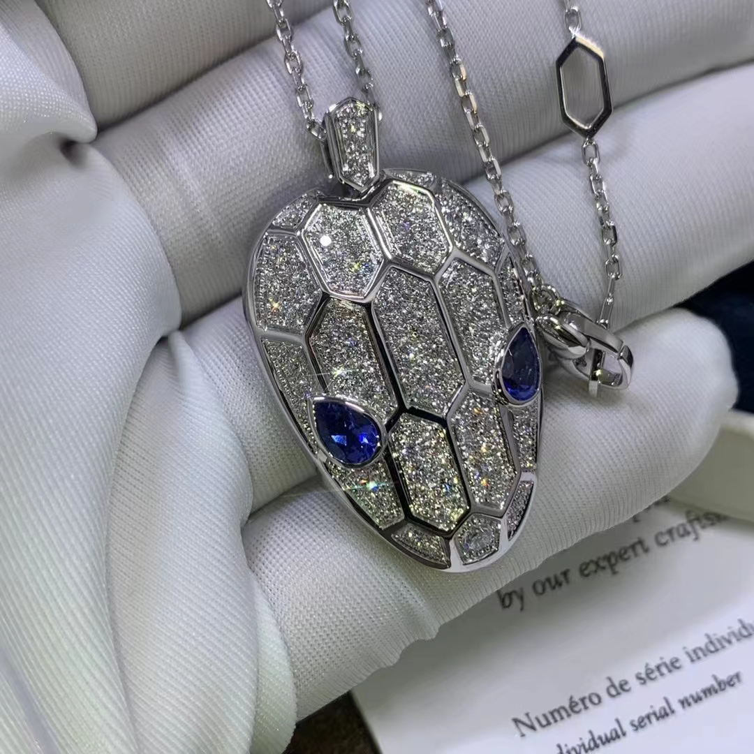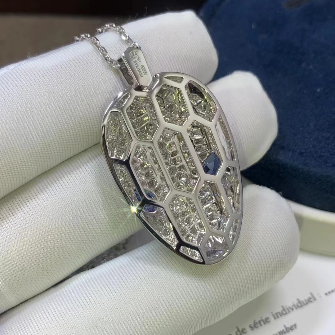 Capturing the power of attraction, the Serpenti necklace glorifies the head of the snake in a jeweled design that sparkles with glamour and sophistication. Inspired by the sensuality of a woman’s gaze, Bulgari reinterprets its spirit animal, focusing on the magnetic power of the eyes and channeling their irresistible ability to seduce.