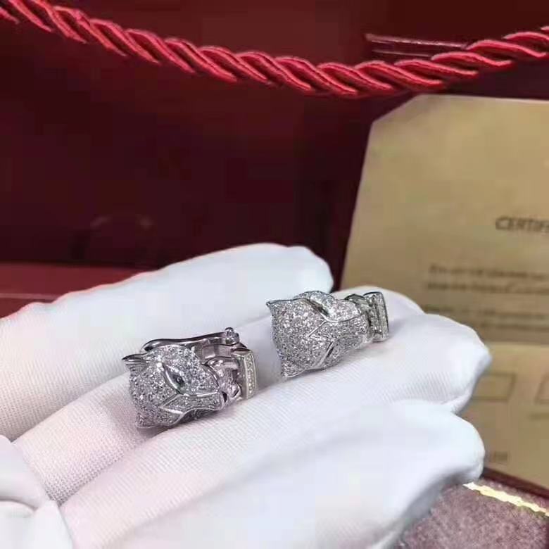 » Products » 18k Gold Earrings » 18k White Gold Panthère de Cartier Emeralds Onyx and Diamond Paved Earrings