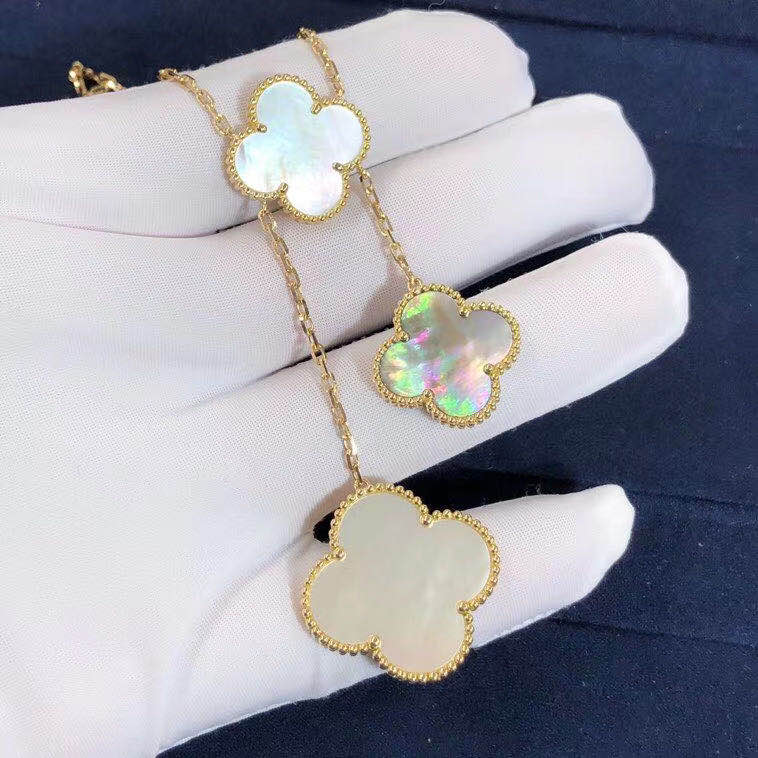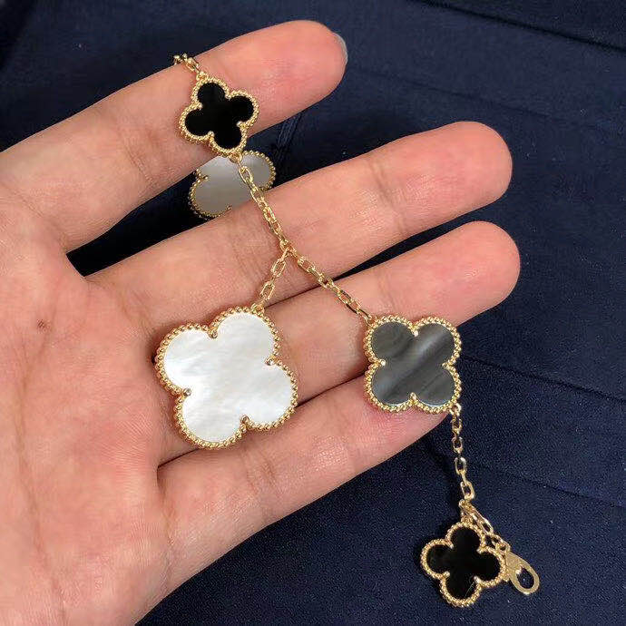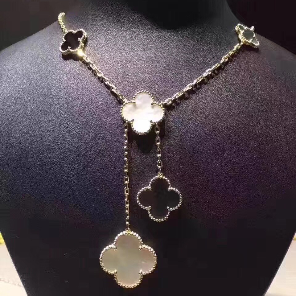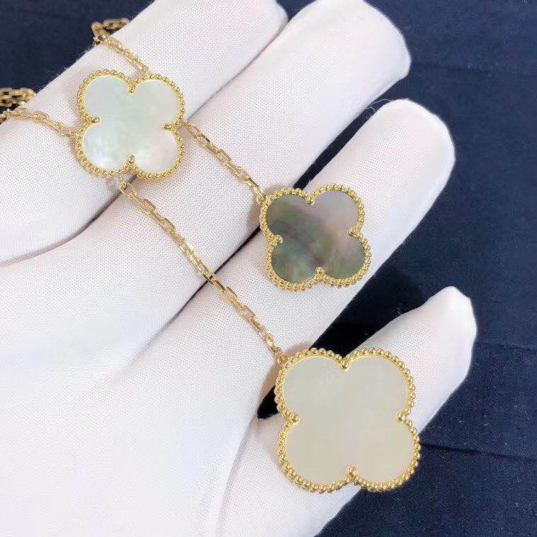 18k Yellow Gold Van Cleef & Arpels Magic Alhambra necklace 6 motifs white and gray mother-of-pearl, onyx