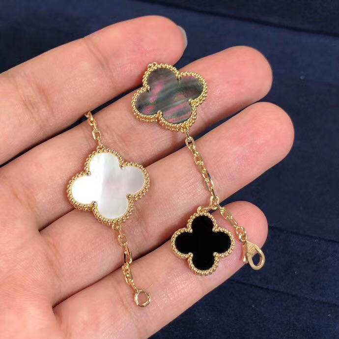 Created in 2006 by Van Cleef & Arpels, the Magic Alhambra jewelry creations gather different-sized Alhambra motifs, coming together in a joyful dance. Inspired by the clover leaf, their asymmetric designs feature different associations of materials.