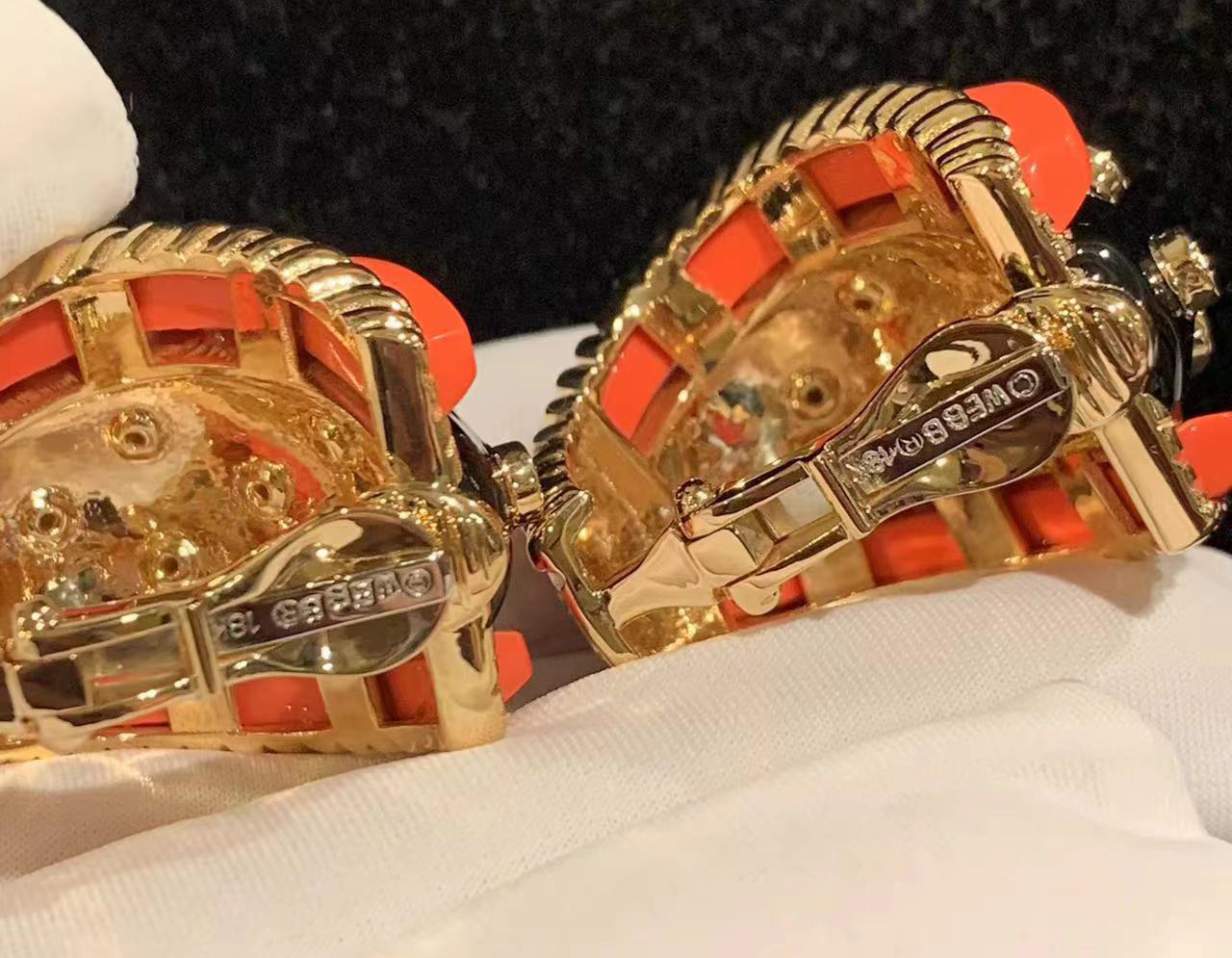 The total weight of 44 grams adds to their substantial feel. As a testament to their authenticity and quality, they are marked with “Webb 18k Plat,” ensuring you’re investing in a true work of art by David Webb.