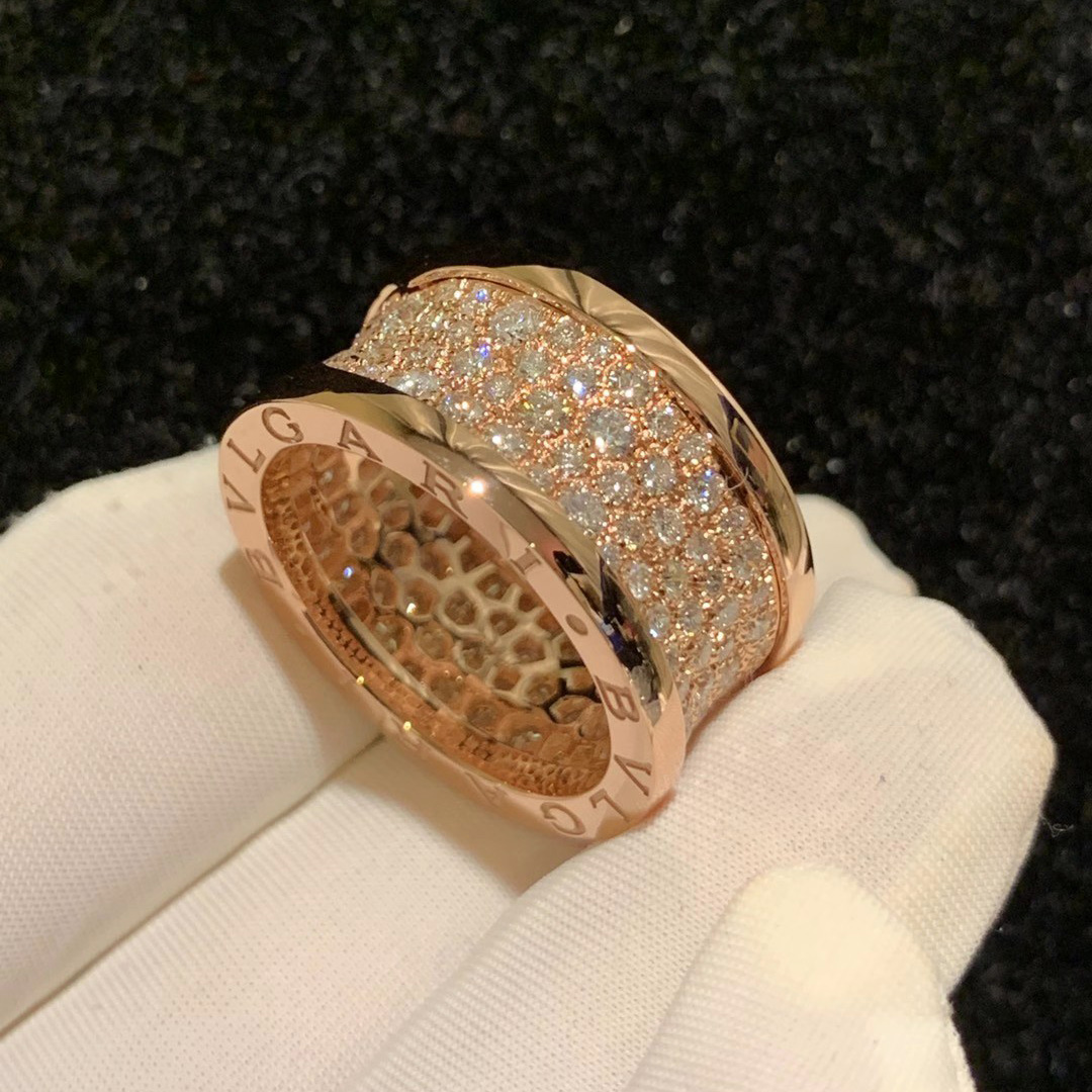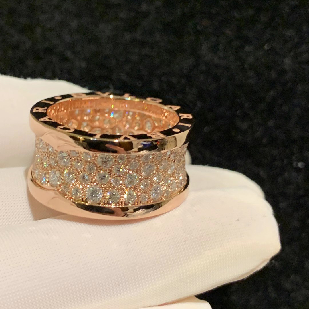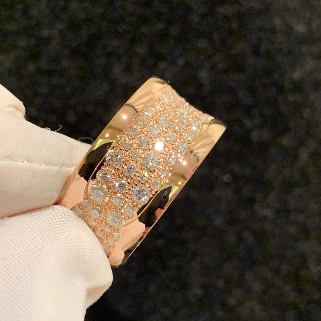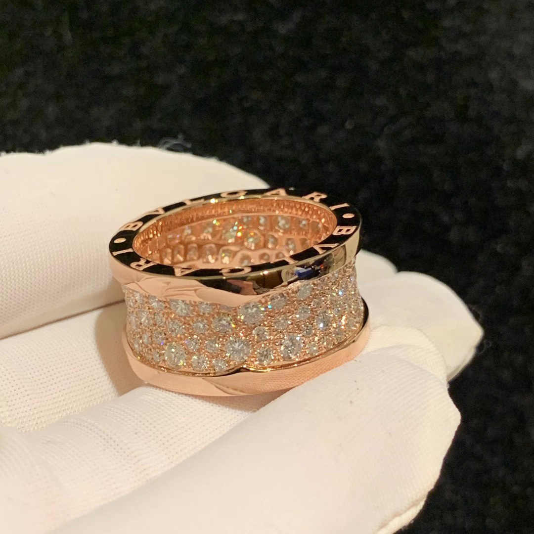 Designer B.zero1 Ring in 18kt Rose Gold with Paved Diamonds.