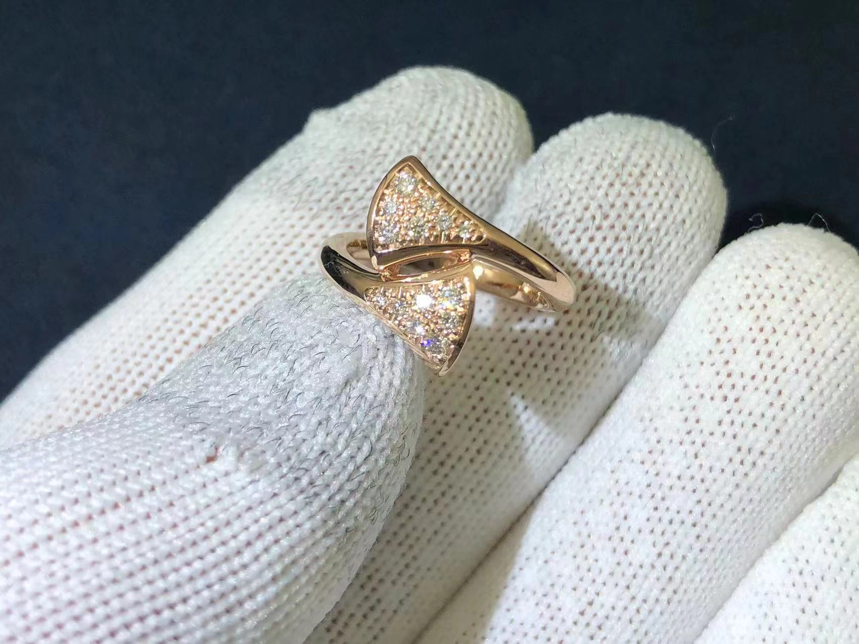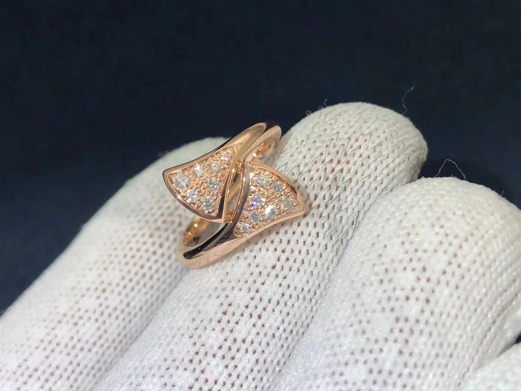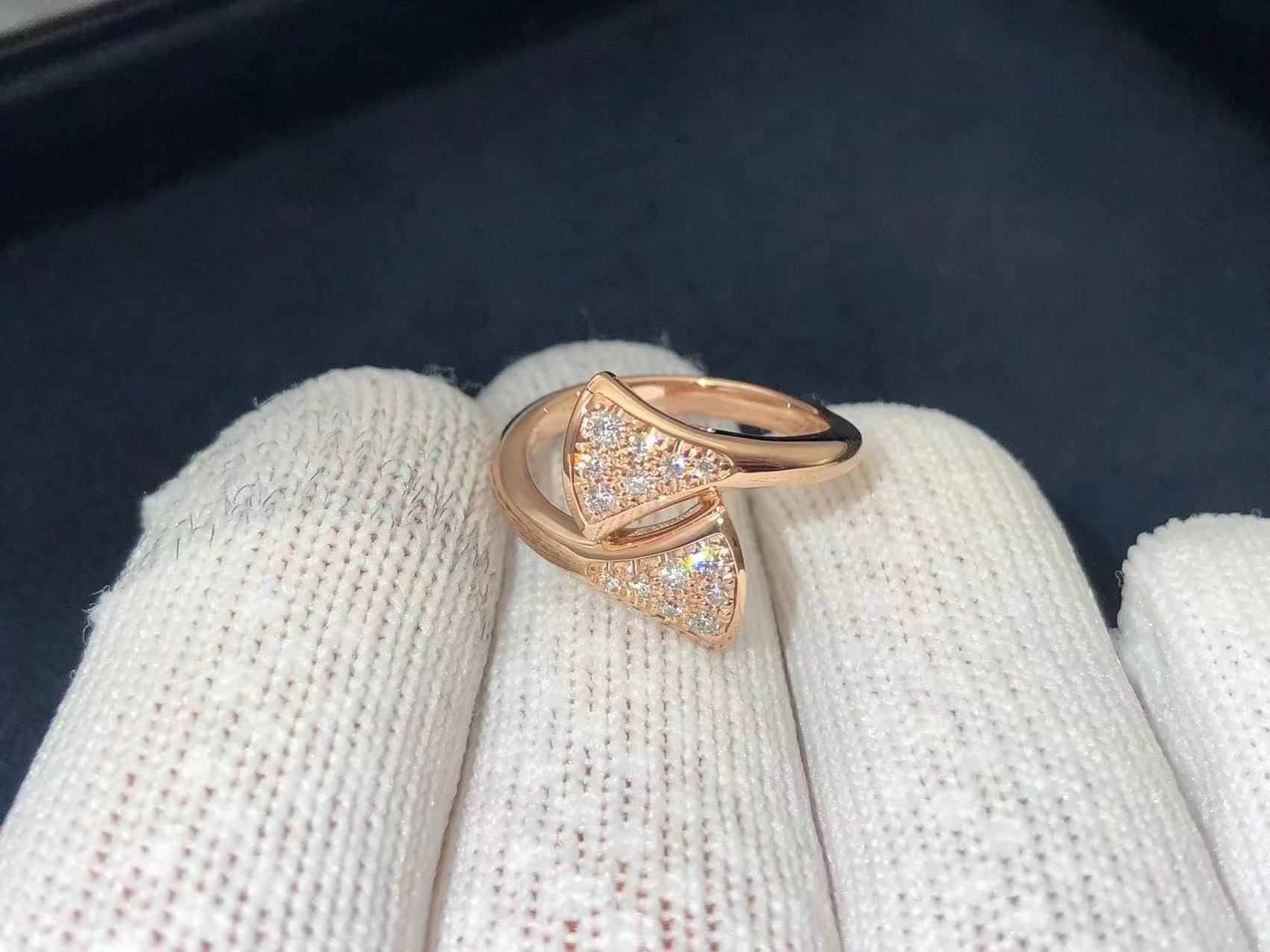 The ring is crafted with 18k rose gold and the signature motifs are beautifully laid with diamonds. The grandeur of Italian beauty is reflected in this ring from Bvlgari’s Divas’ Dream collection. The line is inspired by the fan-shaped mosaics of the Caracalla Baths in Rome, a detail the brand has interpreted with mastery.