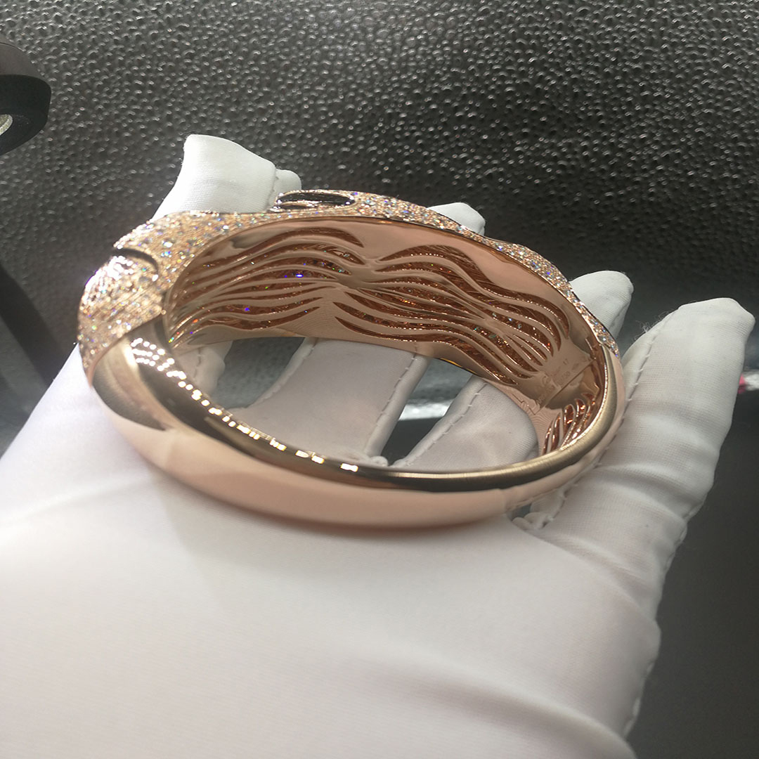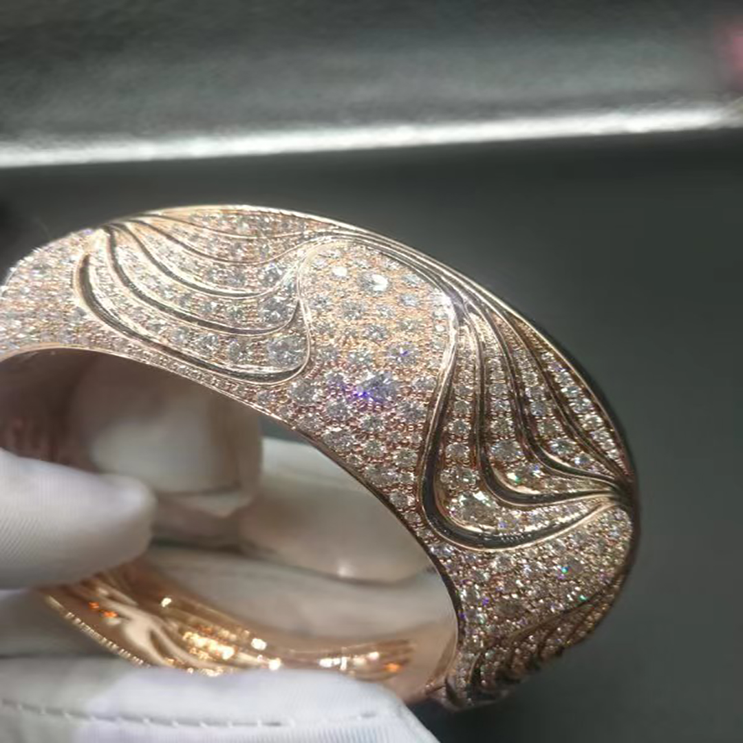 » Products » 18k Gold Bracelets » Inspired Cartier Diamond Fold Weave Bangle in 18K Rose Gold