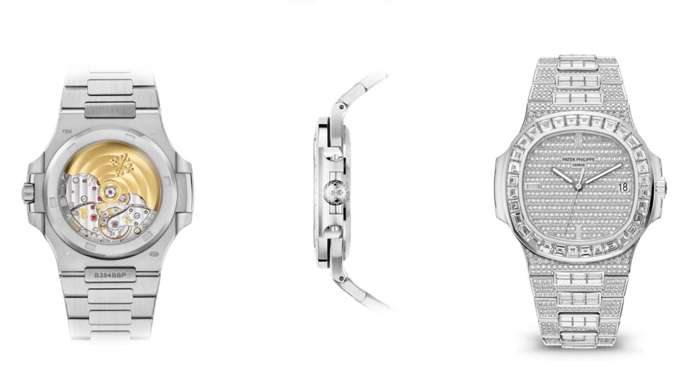 Bracelet/Strap: 18K White Gold with nature Diamond Bracelet, Nautilus fold-over clasp.