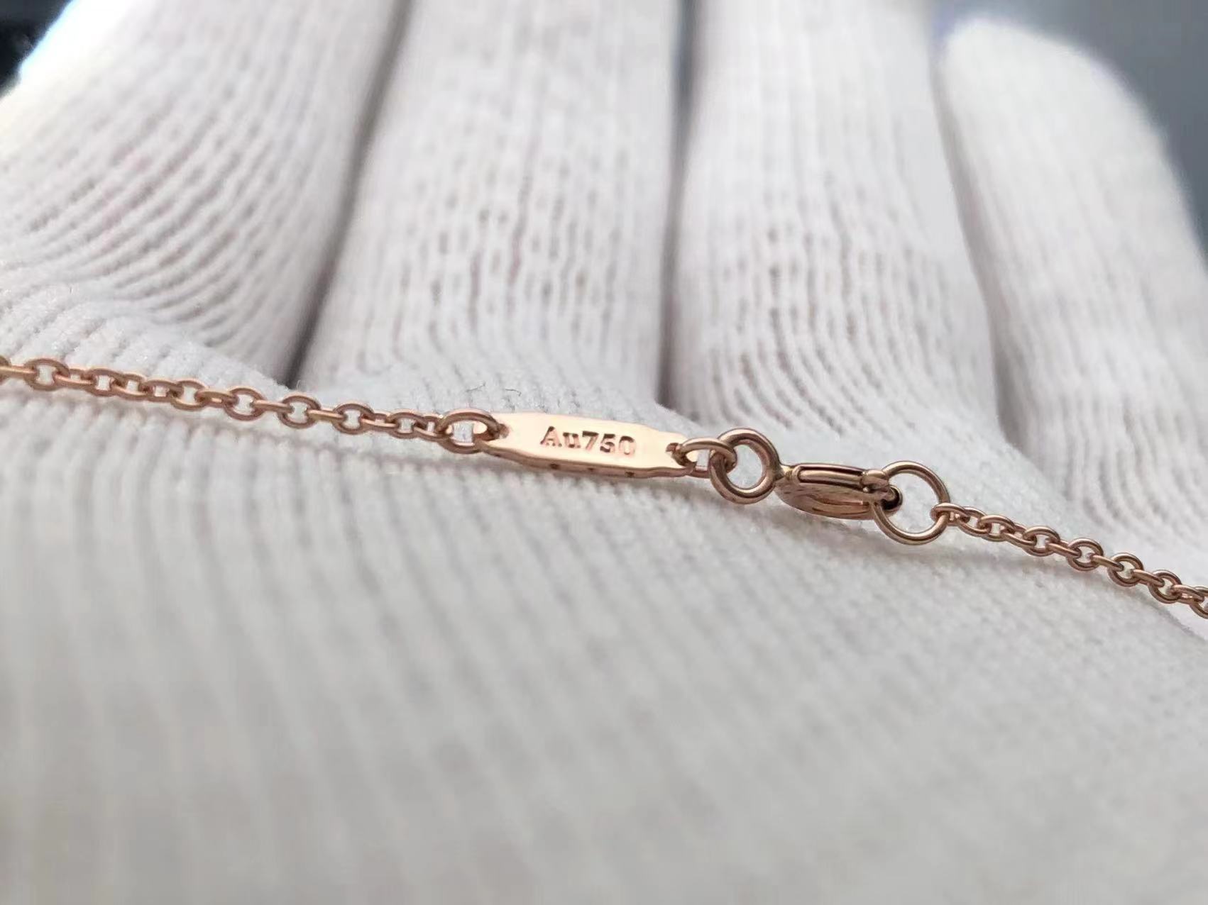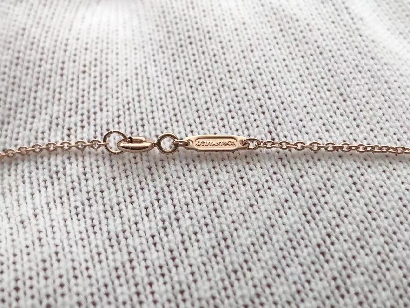18k rose gold with round brilliant diamonds Carat total weight .25 On an adjustable 15-17″ chain Features Tiffany & Co. hallmark