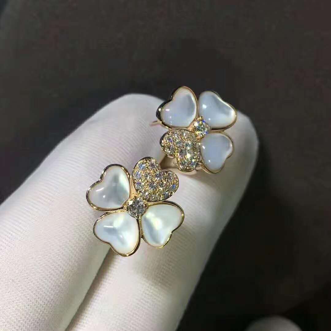 Van Cleef & Arpels Cosmos Earrings set with Mother of Pearl and Diamonds Small Model