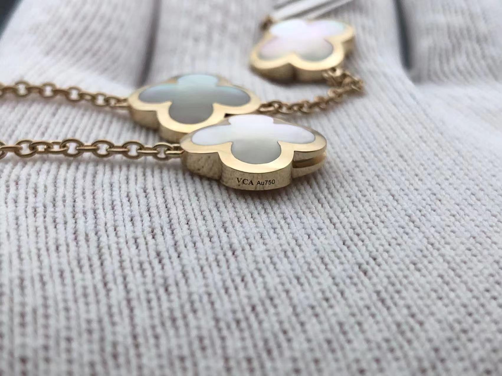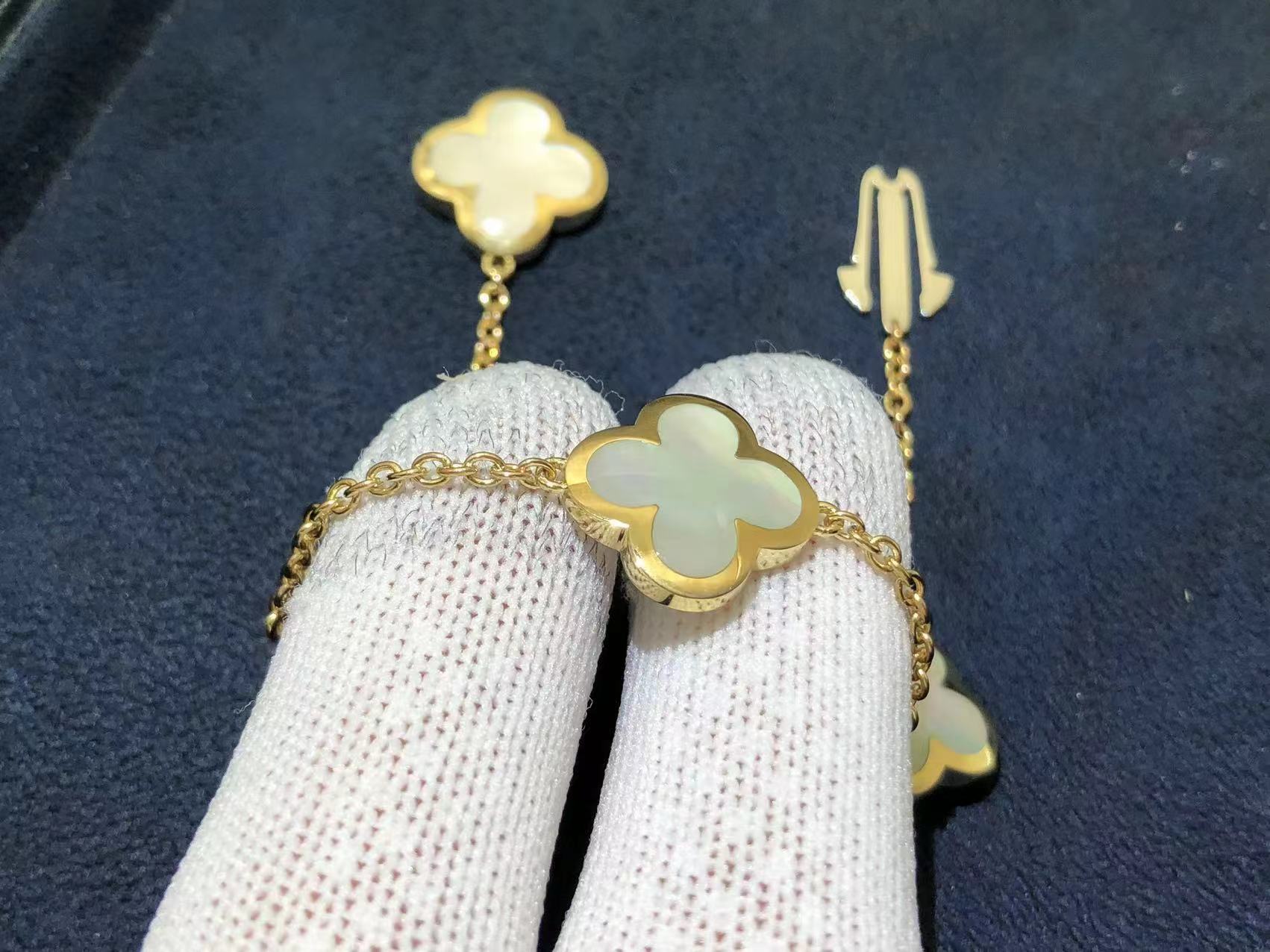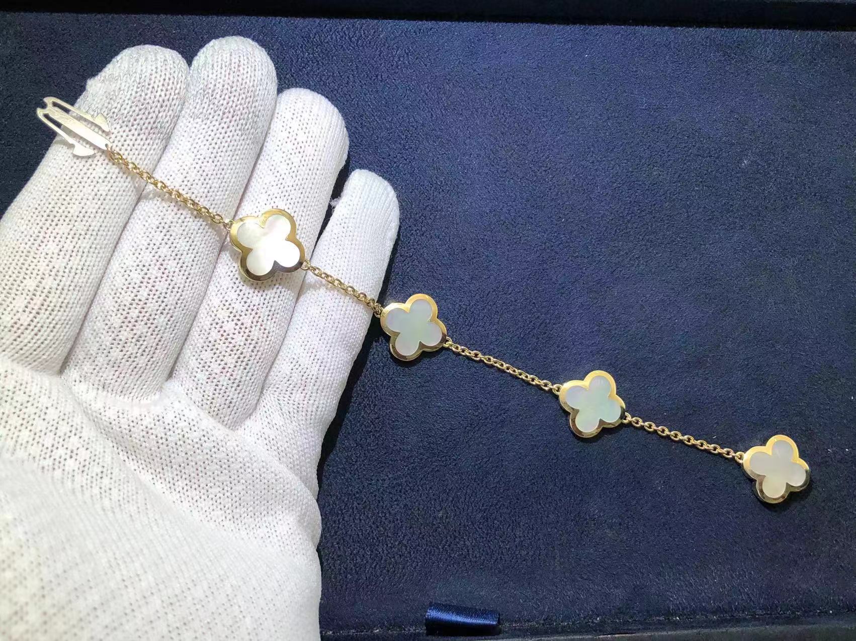 Pure Alhambra bracelet, 4 motifs, yellow gold, white mother-of-pearl.